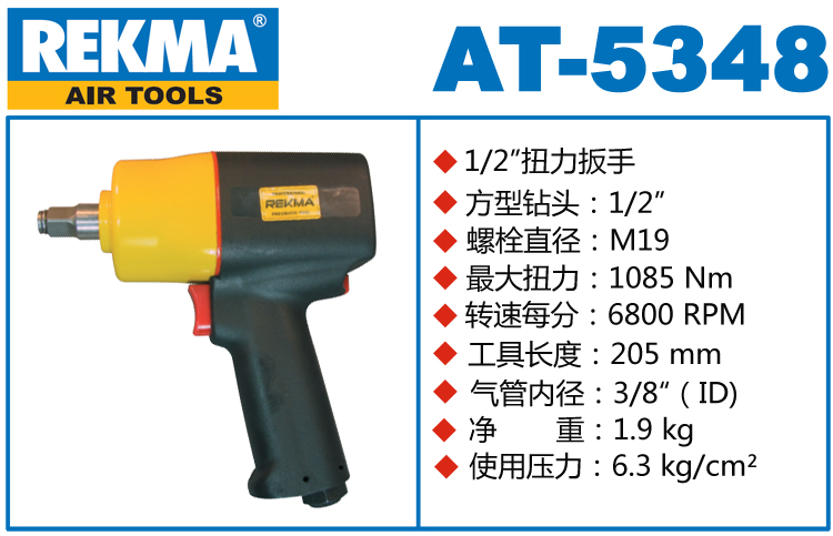 1.如阁下对REKMA AT-5348 锐克马1/2"扭力气动扳手价格和使用方法等有需求时,我们的客服人员将为阁下找到解决REKMA AT-5348 锐克马1/2"扭力气动扳手问题的方法。