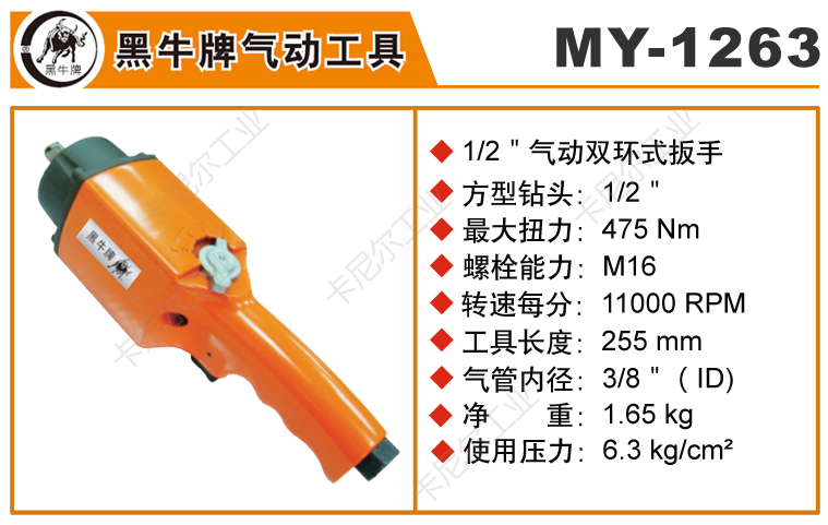 3.我们将对MY-1263黑牛牌气动双环式扳手提供免费送检,阁下在签收快递前请详细核查MY-1263黑牛牌气动双环式扳手资料信息。