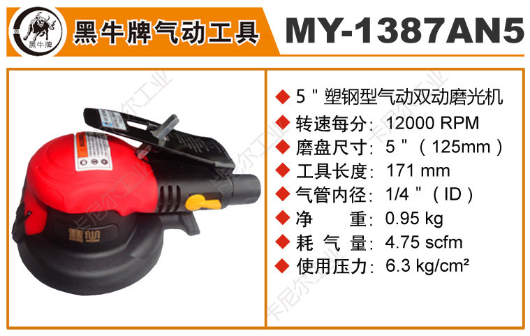 3.我们将对MY-1387AN5黑牛牌塑钢型气动磨光机提供免费送检,阁下在签收快递前请详细核查MY-1387AN5黑牛牌塑钢型气动磨光机资料信息。